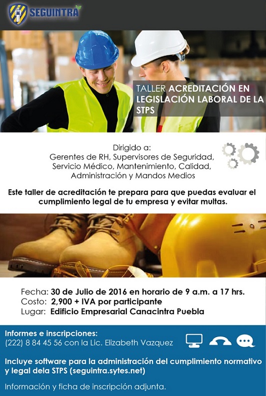Taller de Acreditación en Legislación Laboral de STPS, 30 de Julio de 2016 – Puebla, México