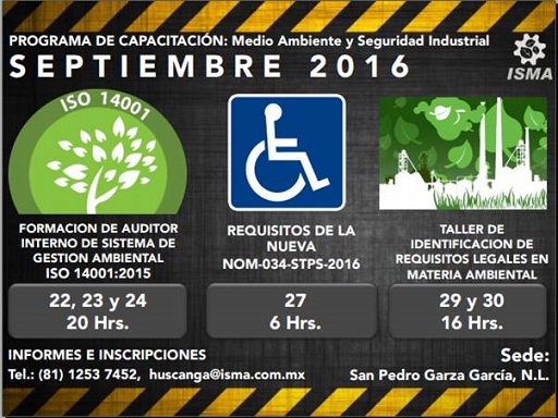 Ingeniería Sustentable y Medio Ambiente, tiene el agrado de invitarte a participar a los cursos programados para el mes de Septiembre de 2016 en la ciudad de San Pedro Garza García, N.L.