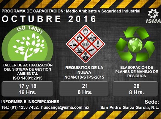 Ingeniería Sustentable y Medio Ambiente, tiene el agrado de invitarte a participar a los cursos programados para el mes de Octubre de 2016 en la ciudad de San Pedro Garza García, N.L.